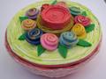 hecho en papel con flores en foami en la tapa colores rosado y verde manzana, detalles en dorado