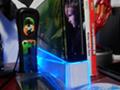 BASE PARA EL NINTENDO WII CON UNA LUZ LED DE COLOR AZUL Y UN VENTILADOR PARA MANTENER