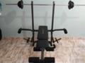Banco de fuerza marca FITNESS en excelente estado Con: 4 Discos de 4.5 Kg 6 discos de 2.5 Kg 6 discos de 1Kg Guantines